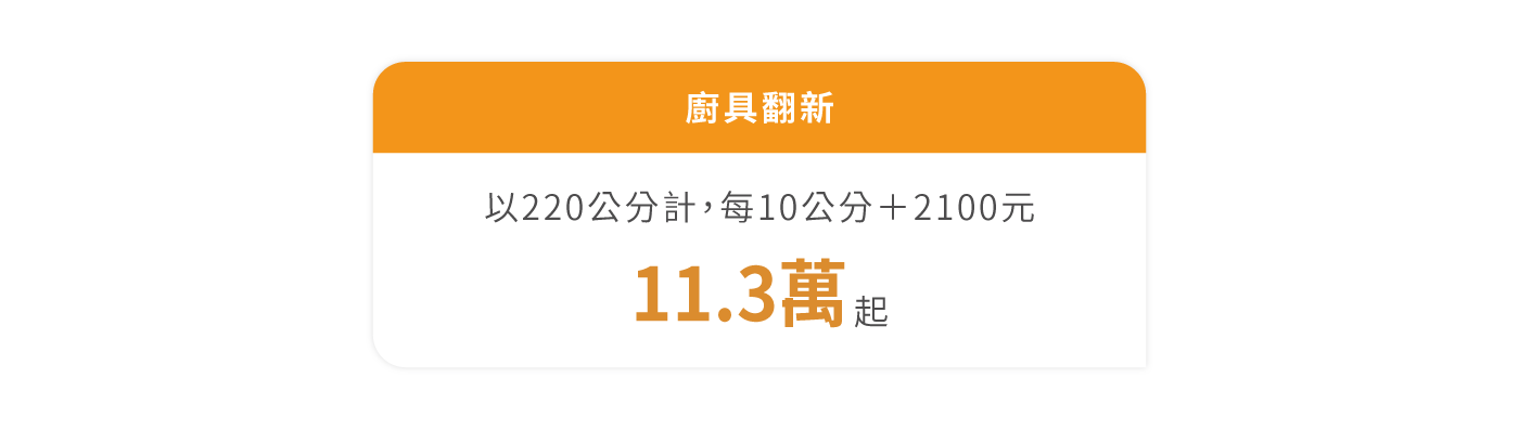 廚具以220公分計,每10公分+2100元