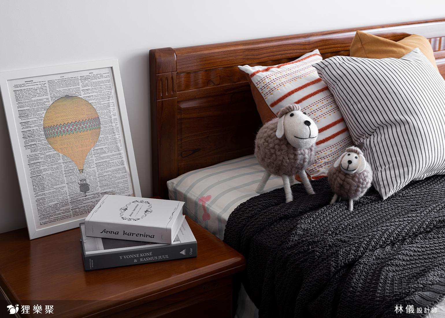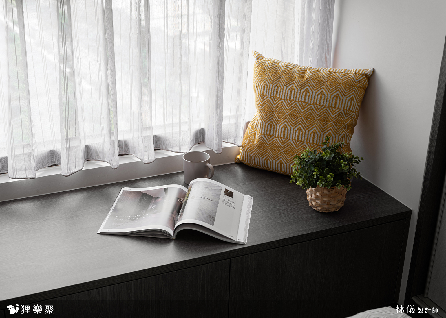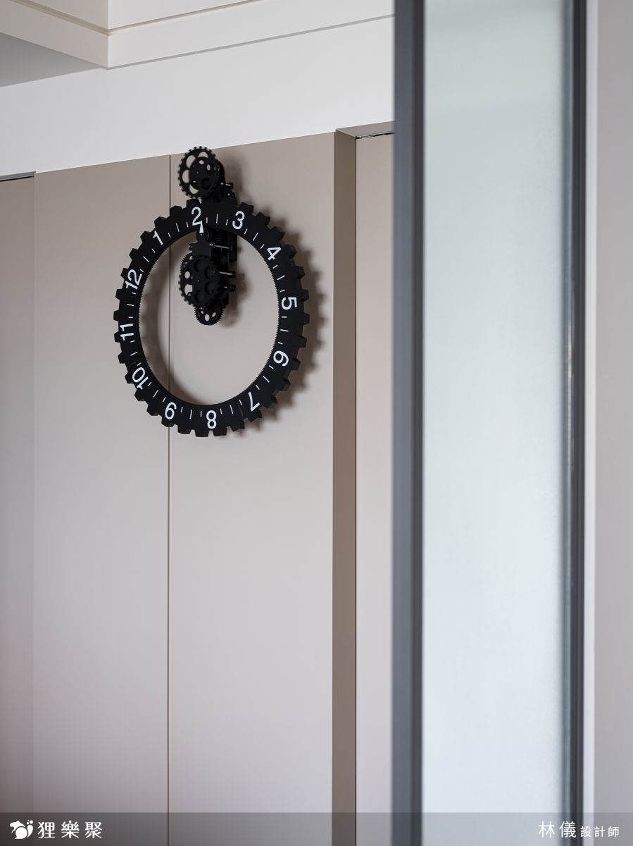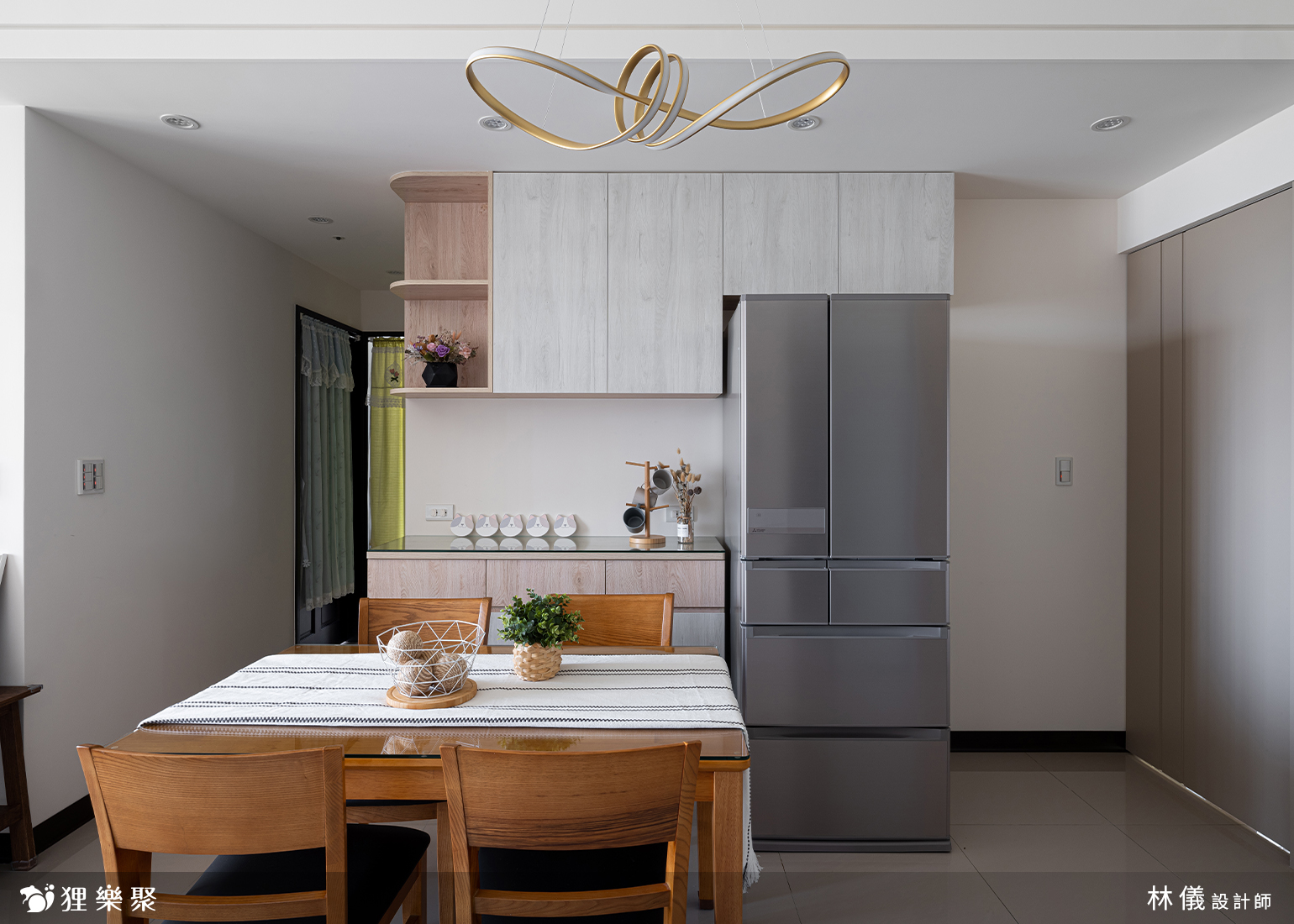 系統櫃是小坪數裝潢的一大助力,比起現成家具的固定尺寸,系統櫃能夠依照屋主的想法量身訂做,並為不同寬度的牆、不同高度的樑打造專屬於這個空間的櫃子,最大化收納空間之餘,頂天的櫃體也省去了清掃的功夫,另外還有低甲醛、粉塵少、組裝快速等優點。全室使用系統櫃設計收納櫃體,在公共區域只利用少部分的開放櫃來做變化,並提供屋主足量的展示需求,其餘櫃體皆搭配門片,降低灰塵進入的機會;除此之外,也可以利用系統櫃設計寵物空間,門片下方的圓形挖孔可以讓寵物自由進出,提供家中的小成員大大的安全感。