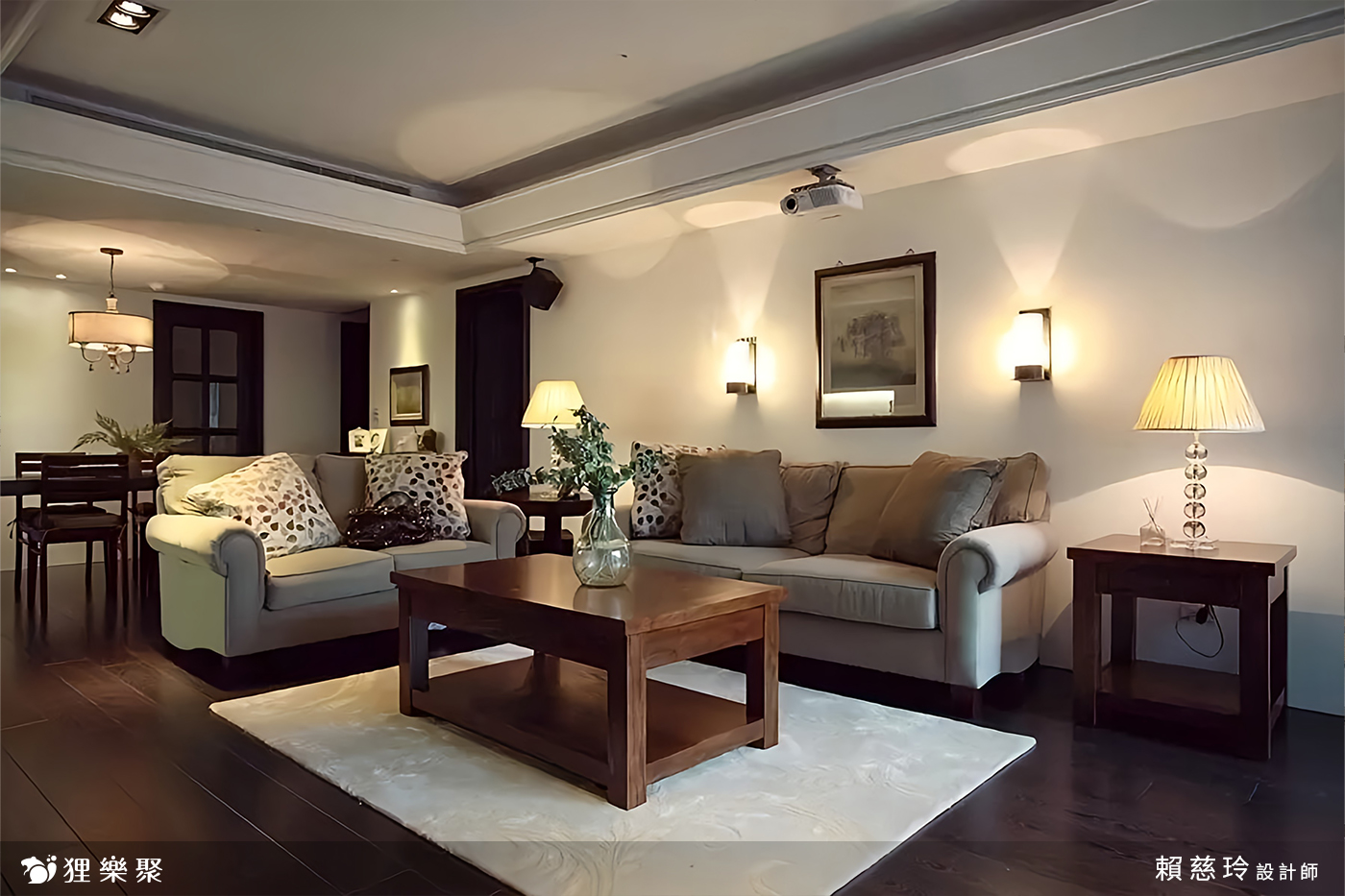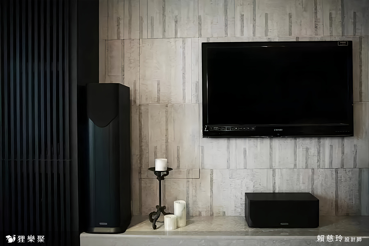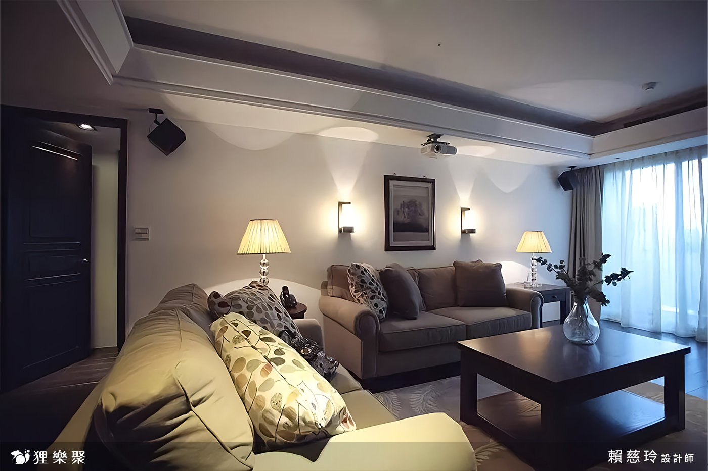 屋主是個重度電影迷,休閒時光最大的樂趣就是看電影,客廳除了一台壁掛電視外,也設置了投影機和投影幕,投影幕一降下來、燈光一關,這種享受比起電影院有過之而無不及!