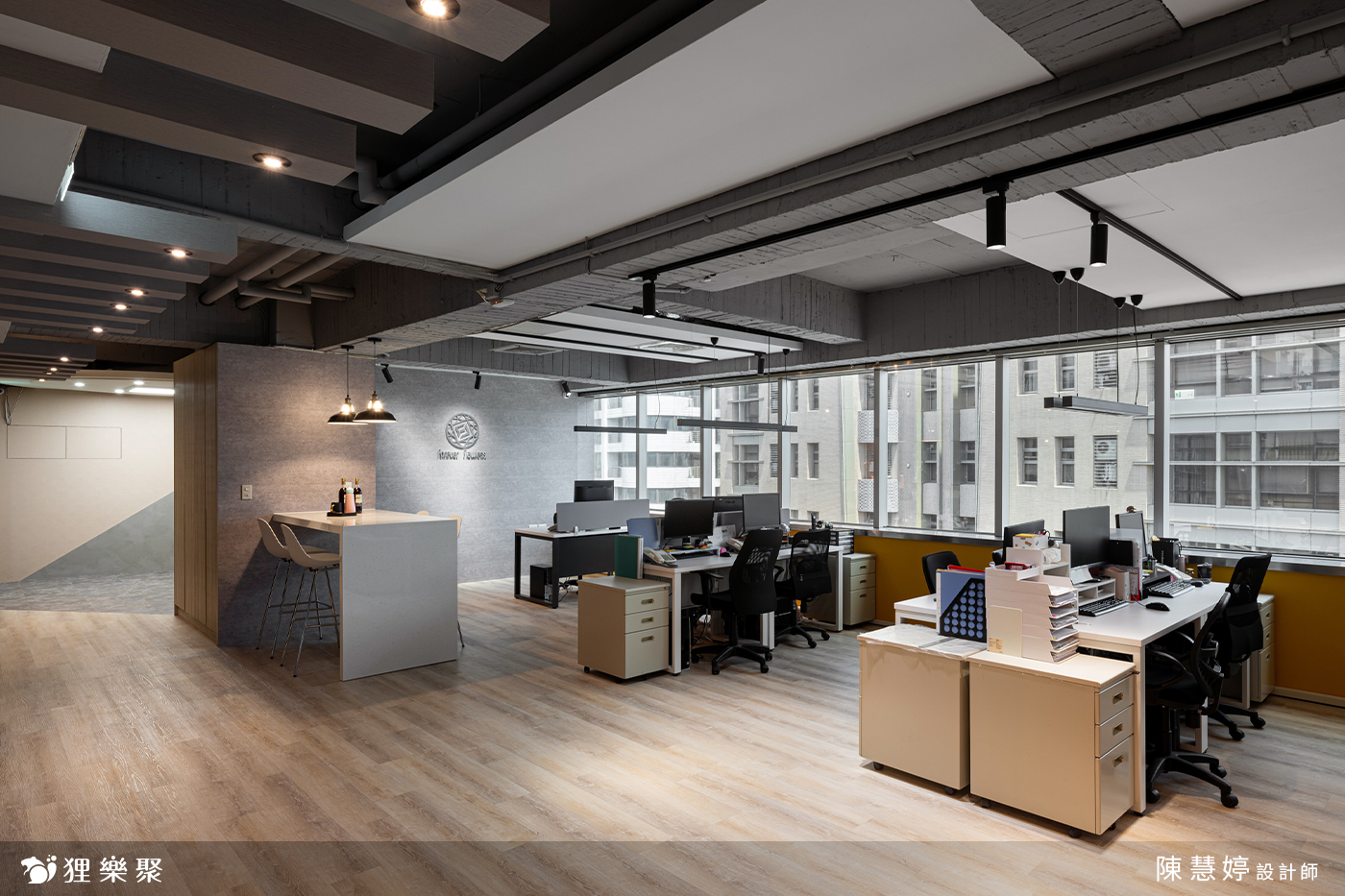 LOFT風格在裝潢時特別注重空間的通透性,盡量減少隔間的阻擋,讓使用者能夠自行靈活地安排空間格局,若是日後員工人數擴充,這樣自由的格局就能夠很方便快速地重新安排,不會因裝潢而受到太多限制。