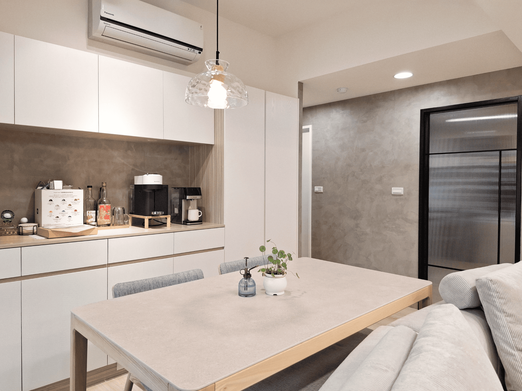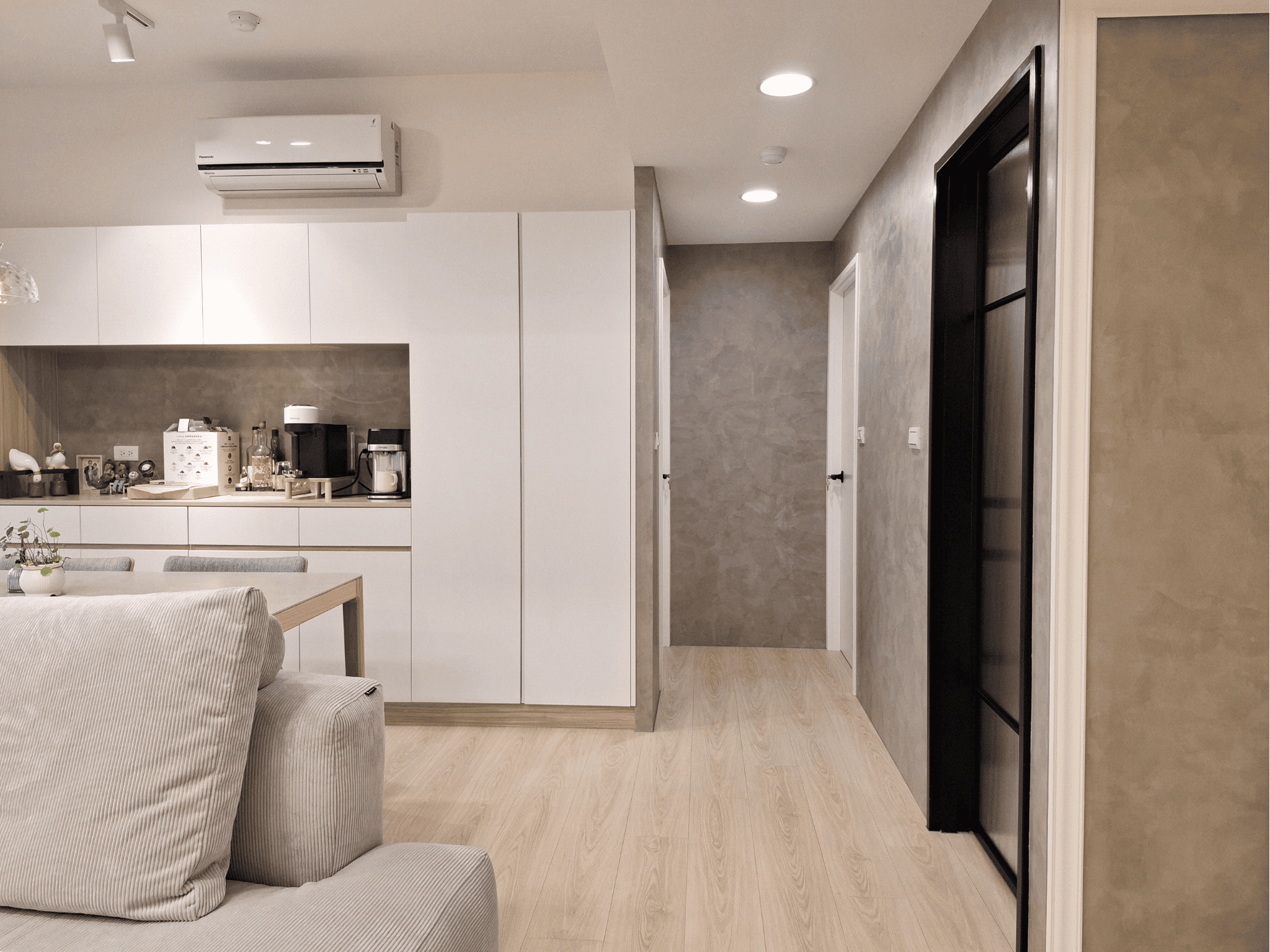 整體設計透過材質、比例與光線的精緻編排,構築出一處簡約、靜謐且充滿細節層次的現代居家場域。